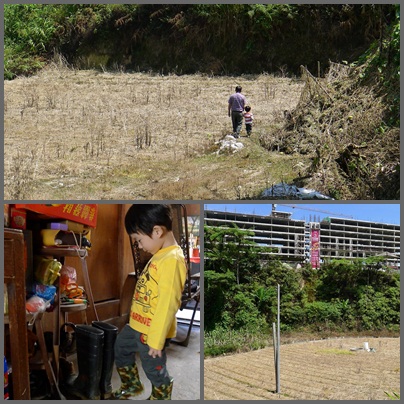 因为雨季,嫲嫲家前的空地,荒废了。不然平常的日子,都是种满包菜的。帮轩仔穿上靴子,爷爷带他到田里走了一圈。